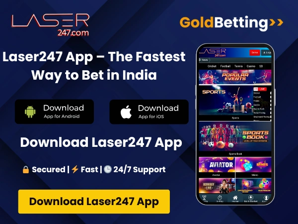 The Laser247 App (web-based mobile platform) gives Indian bettors seamless access to sports and casino markets on the go — no unsafe APK downloads required.